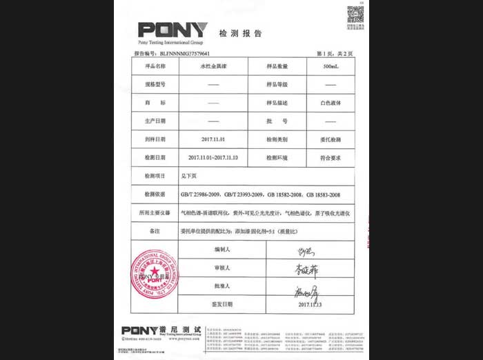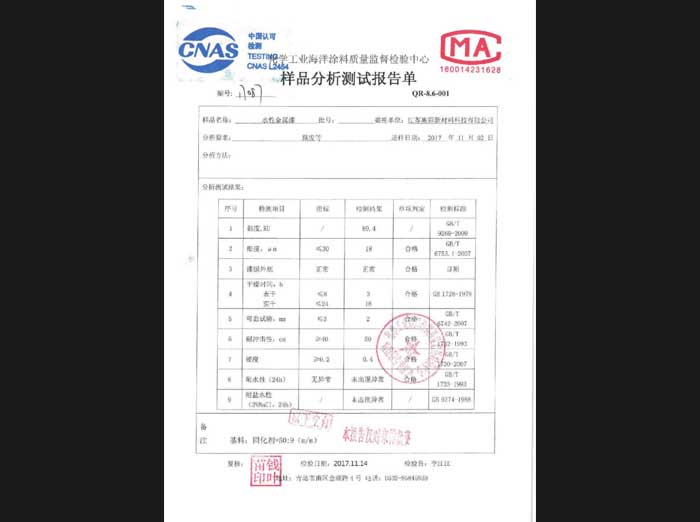 水性金屬漆檢測報告